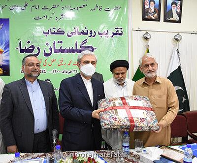 همچنین، مراسم رونمایی از کتاب «گلستان رضا» به نوشته برگزیده جشنواره بین المللی امام رضا(ع) هم با حضور تعدادی از اندیشمندان، شخصیت های برجسته اهل تسنن و تشیع، استادان دانشگاه، شعرا و علاقه مندان به توسعه روابط فرهنگی دو کشور برادر ایران و پاکستان برگزار شد.